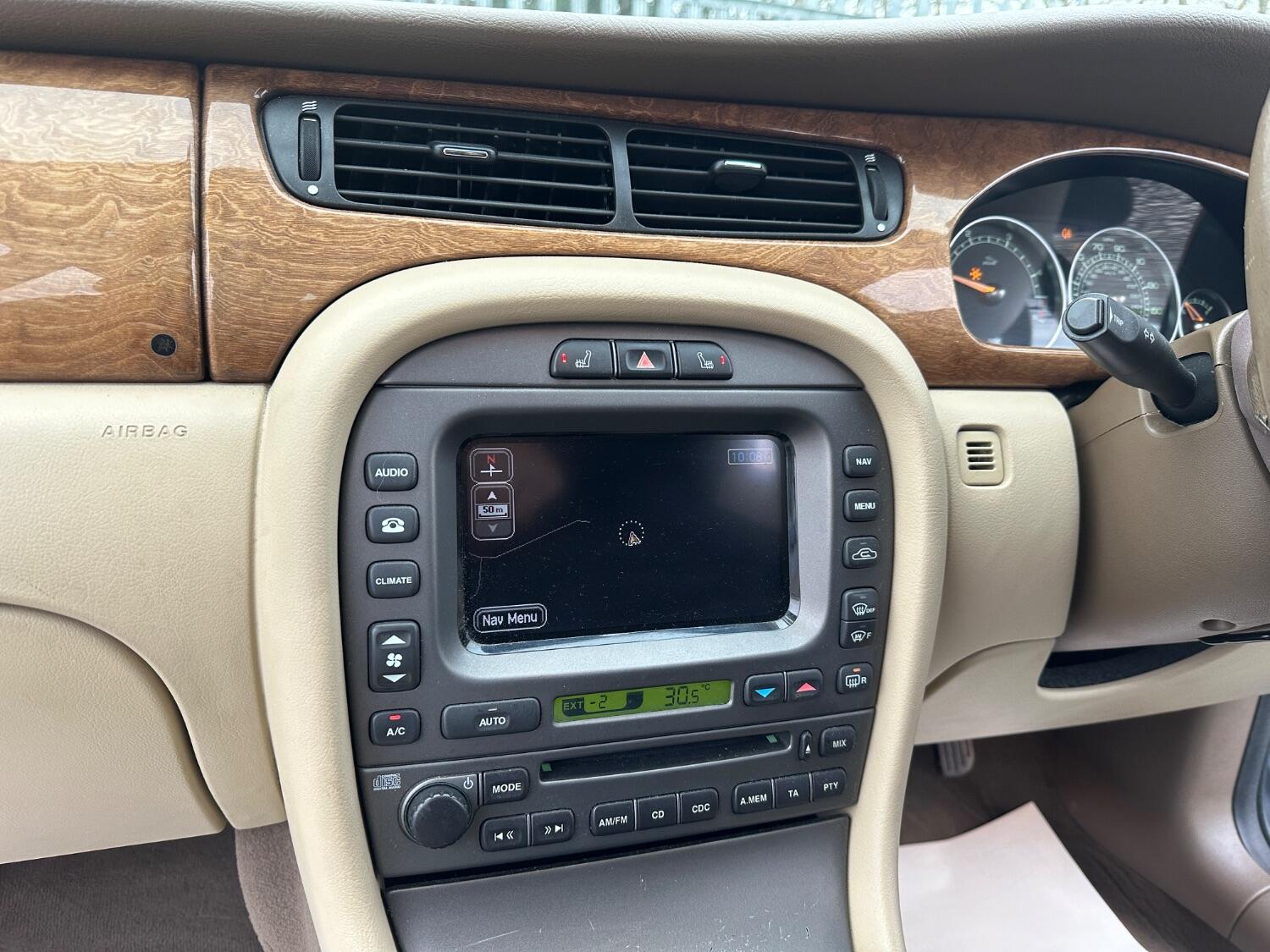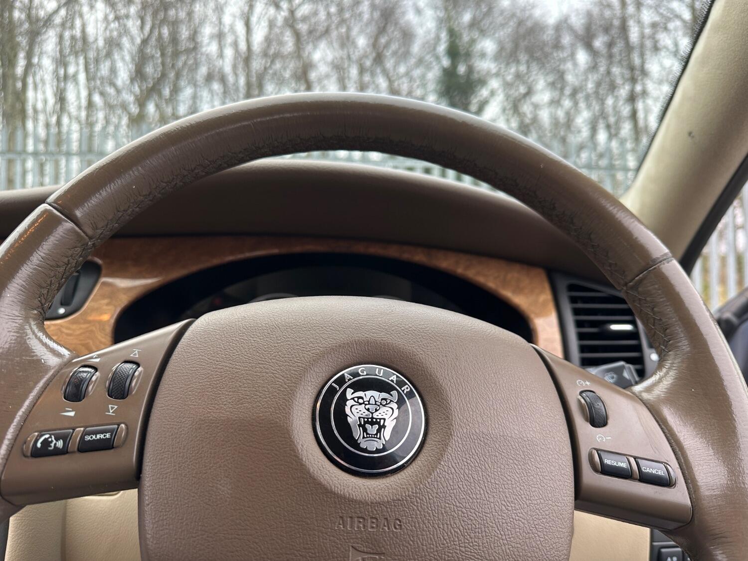 Cruise Control, Cup Holder, Electric Windows (Front/Rear), Front Ashtray with Cigar Lighter, Gear Knob Leather, Heated Front Screen, In Car Entertainment, Jaguar Premium Sound System, Jaguar Voice, Navigation Sys - inc DVD Mapping, 7in Screen, Rain Sensor, Satellite Navigation, Seat Height Adjustment, Seats Electric (Memory Driver), Seats Heated (Driver/Passenger), Seats Split Rear, Speakers, Steering Wheel Mounted Controls (Audio/Cruise Control/Telephone), Steering Wheel Wood/Leather, Sun Visor, Trip Computer, Upholstery Leather, 2 Stage Heated Front Seats, 6-disc Luggage Compartment CD Changer, Adjustable Steering Column/Wheel, Ashtray/Lighter, Carpet, Carpet Mat Set, Climate Control, Electric Folding Exterior Mirrors, Headlamp Wash, Metallic Paint, Mirrors External, Side Protection Mouldings, Spare Wheel (Space Saver), Windscreen Wiper, Alloy Wheels (17in), Body Coloured Bumpers, Load Anchorage Points, Mirrors Internal, Power Socket, Deadlocks, Electronic Brake Force Distribution, Electronic Stability Programme, Front Fog Lights, Head Air Bags, Head Restraints, Headlight Elevation, Immobiliser, Parking Aid (Front/Rear), Power-Assisted Steering, Seat - ISOFIX Anchorage Point, Traction Control System, Air Bag Driver, Air Bag Passenger, Air Bag Side, Alarm, Anti-Lock Brakes, Central Door Locking, Centre Rear Seat Belt